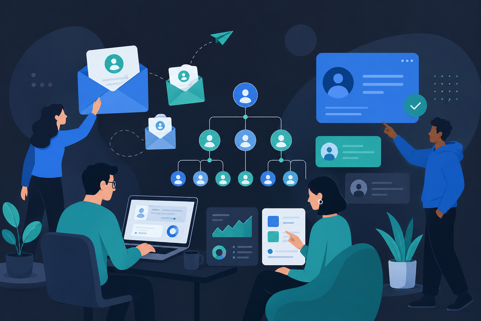 - Приглашения по email с ролью в компании, даже если человек ещё не зарегистрирован.